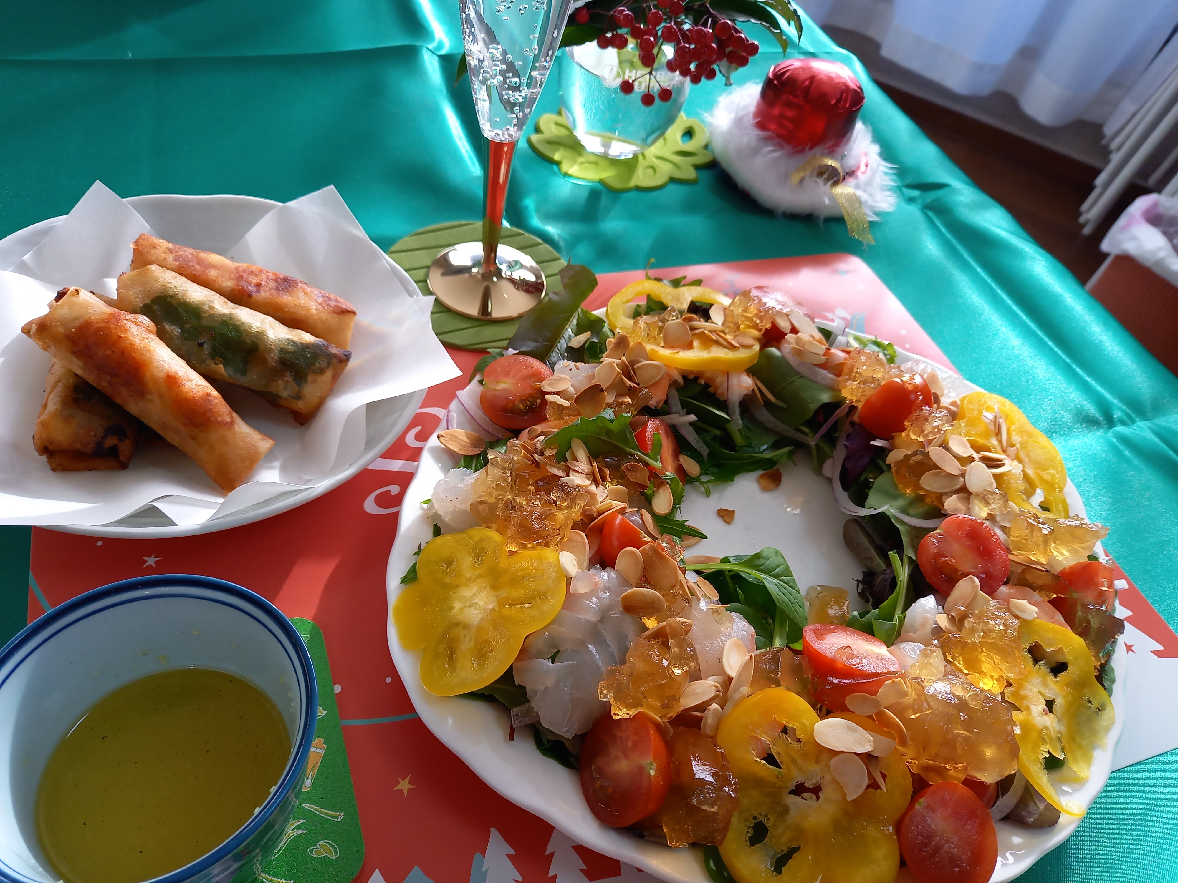 コロナ禍という試練のお陰様で、むしろ新しい境地が開けた2020年でした💕 毎月一回、世田谷のピーチのキッチンから、ヘルシーメニューを配信。 12月は、ワンフィンガーで食べられる“長芋の春巻き”と、 グリーンサラダに海鮮、ヘルシードレッシングで食べる“リース風サラダ”をご紹介しました。 簡単でヘルシーだけじゃない! ちょっと映えてるでしょ? 一緒に配信するお仲間も増えて…… 来年も、沢山配信していきますよ~♪ どうぞ、よいお年を💕