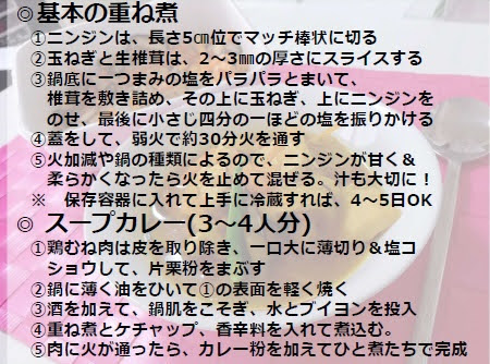 毎月1回の頻度で、 ヘルシー料理を披露してます。 今月は、基本の重ね煮と、 ルーを使わないスープカレー。 市販のカレールーは、 簡単に美味しくできるけど、 ダイエッターにとっては禁断の…(以下自粛(笑)) なので、鶏むね肉を使ってヘルシーに。 助っ人に来てくださった皆さんにも好評でした💕